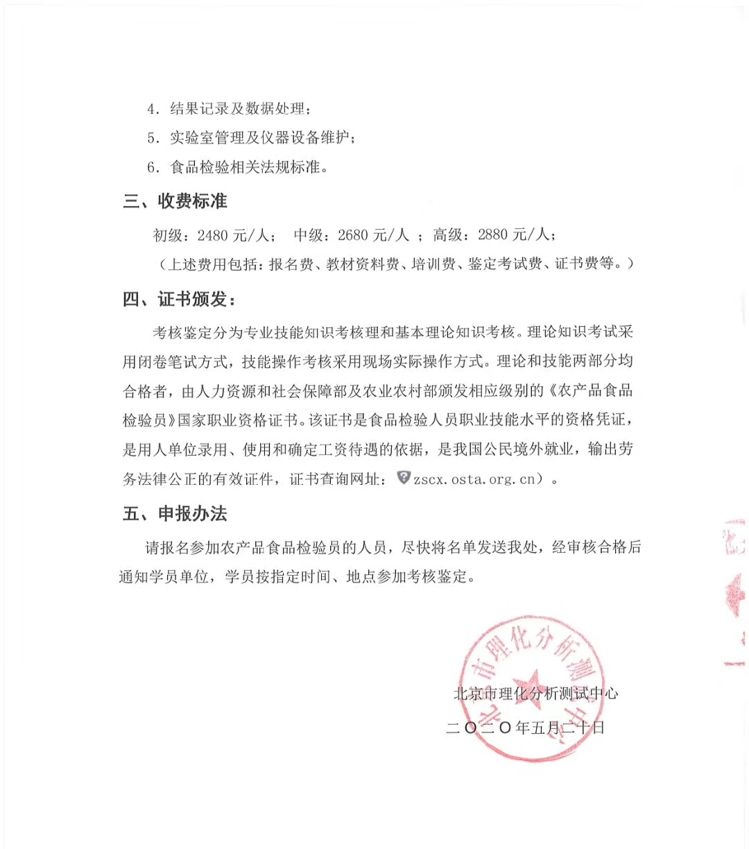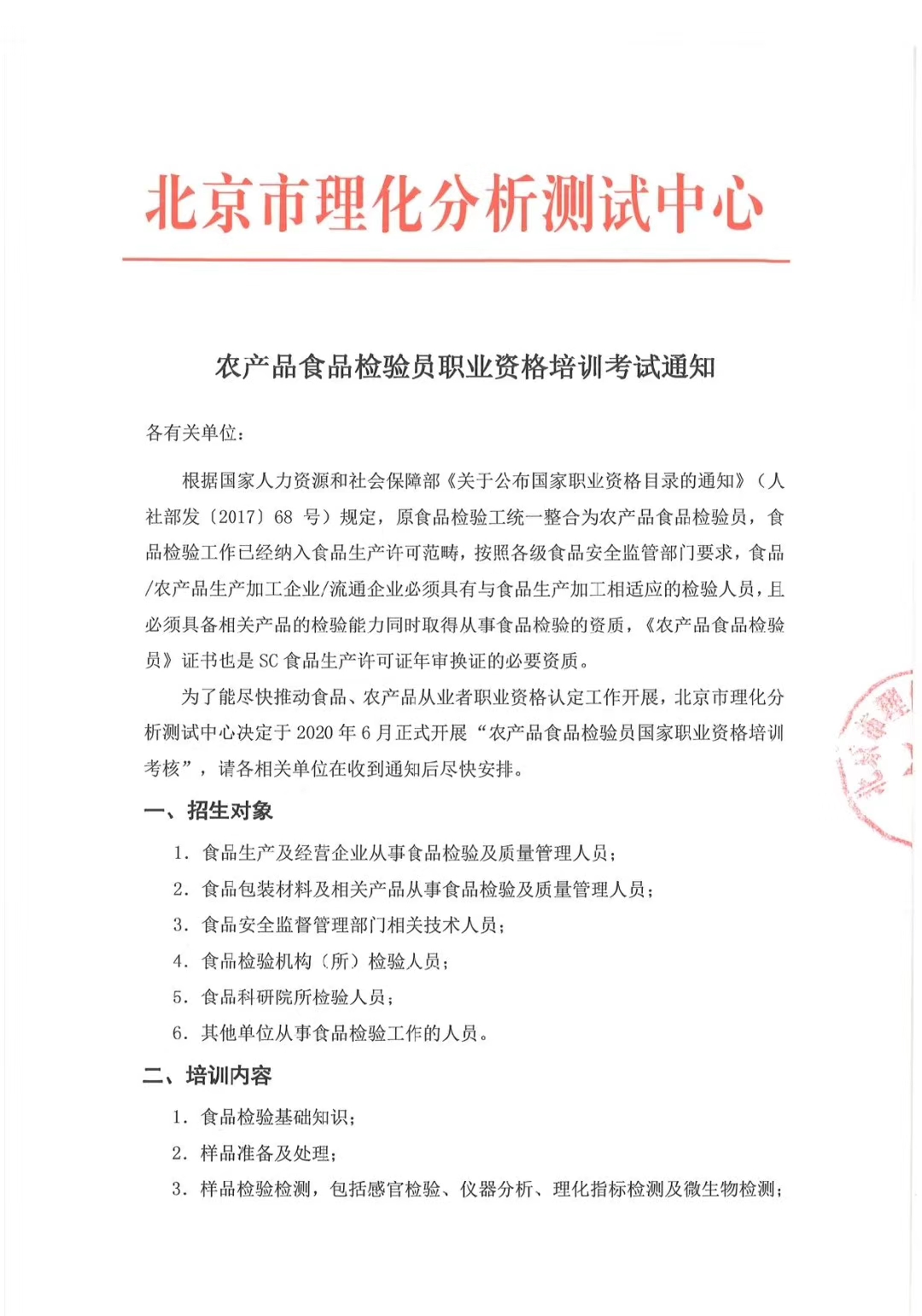 農產品食品檢驗員職業資格培訓考試通知(北京班)