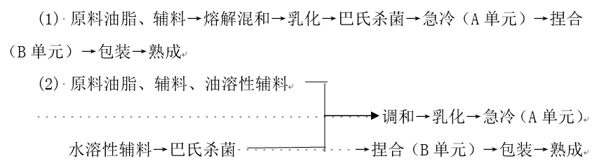 原料油脂、輔料→急冷(或不急冷)→攪拌→包裝→熟成