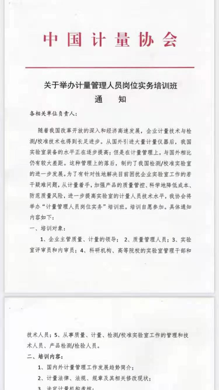 為了幫助各單位提高計(jì)量管理水平,增強(qiáng)計(jì)量人員專業(yè)知識(shí),中國(guó)計(jì)量協(xié)會(huì)長(zhǎng)期舉辦《計(jì)量校準(zhǔn)員》和《計(jì)量管理》培訓(xùn)班,現(xiàn)將有關(guān)事項(xiàng)通知如下: